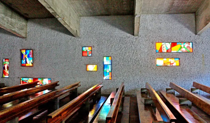 一幢充滿宗教色彩的清水模小教堂,默默的佇立於公東高工校園中,因為其異國情調、美麗的琉璃光影,以及跨越時空藩籬的簡約設計,近年也在社群上被熱烈討論,成為IG新興拍照熱點。為維護校園品質,外賓參觀需先上網申請,獲取參觀權後,也請留意服儀整齊後再前往喔。![]()