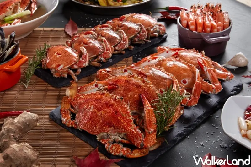 同時提供泰式青木瓜蟹肉沙拉、酥炸軟殼蟹、三杯炒蟹、現沖螃蟹湯及原木煙燻牛排、鮮蝦淡菜等二十幾道精緻料理自助Buffet,還可無限暢飲義大利BOTTEGA氣泡酒、紅白葡萄酒和海尼根現拉生啤酒。