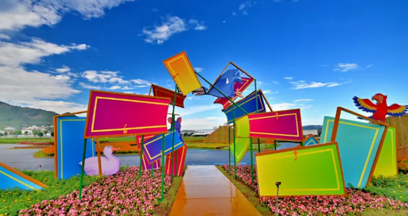 在防疫規劃方面,提醒遊客進入花毯節展區,須全程配戴口罩,如果有發燒(額溫37.5°C以上)症狀或未配戴口罩者,將婉拒入場。此外,展區內各拍照景點將設置排隊動線,維持安全社交距離,讓民眾可以安心地遊覽展區風光。