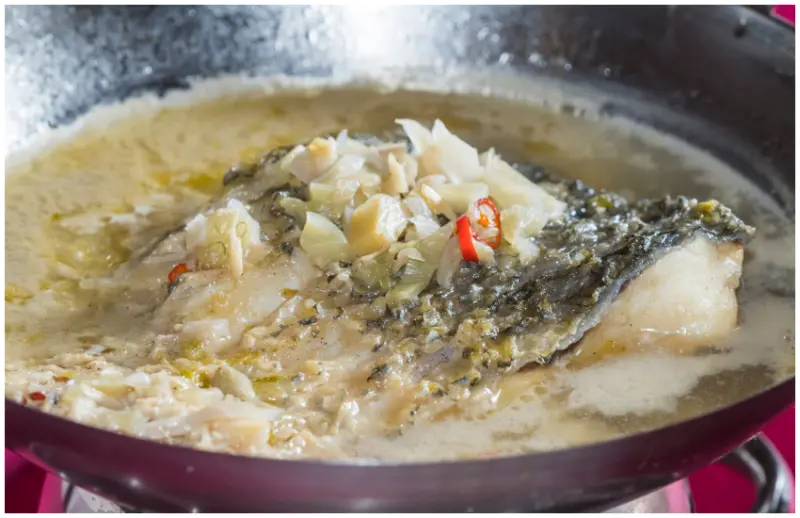 此道為磊園活魚餐廳創辦人私房菜,這是一道父親為心愛女兒製作的魚料理。以口感脆嫩的酸菜細末、鮮嫩魚肚肉,透過時間與火候慢熬而成。這道料理解膩又開胃,是一道增進食慾幫助消化的美味佳餚。