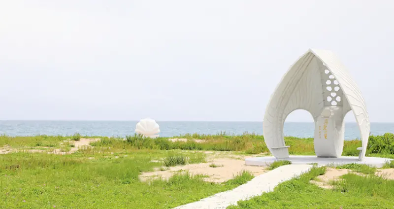 這是全台首座以心貝為形象的裝置藝術,融入沙灘、貝殼、愛情、海潮及音律等元素,矗立在林投公園的沙灘上。純白的外觀與特別的造型,一啟用便成為澎湖旅遊新亮點,周邊也設置了幾個貝殼座椅,搭配碧海藍天呈現唯美風情。