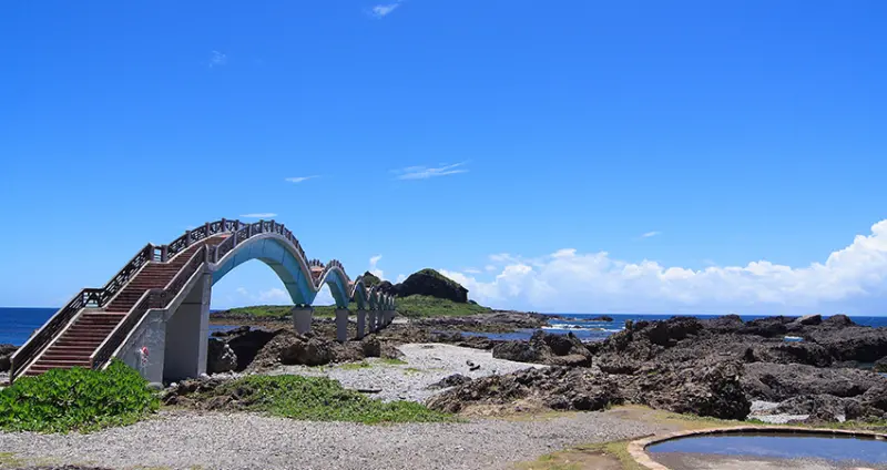 被列為自然保護區的三仙台原是一處岬角,因海水侵蝕而成了離岸島,要到島上必須走過長約400公尺、串起陸地與岬灣兩端的八拱紅色跨海步橋。沿著規劃良好的步道慢慢遊覽,可觀賞豐富的生態、海岸植物及特殊地質。