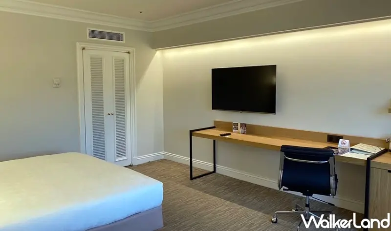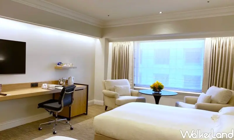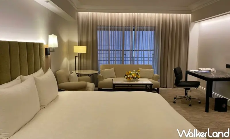 其中2020年全新落成房型「尊榮豪華客房」質感大氣的方正格局、令人舒心的米白色調。法式拉門區隔衣櫥、浴室及臥房,保有私人更衣空間。進口絨布鑲嵌床頭板、進口高級皮質書桌椅等細節,呈獻細膩優雅的西華風韻。