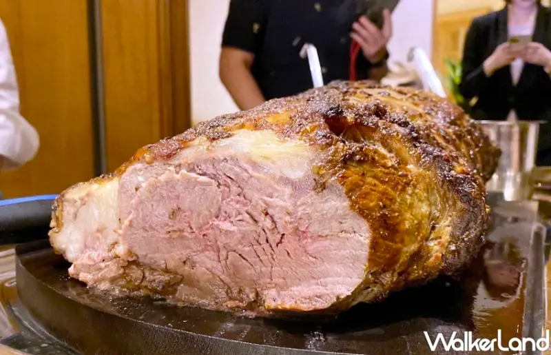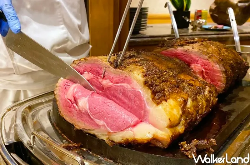 其中爐烤美國頂級肋眼牛排,主廚將美國頂級Prime肋眼牛肉抹上黃芥末醬,以迷迭香、海鹽、黑胡椒、大蒜等香料醃上兩天後爐烤而成。