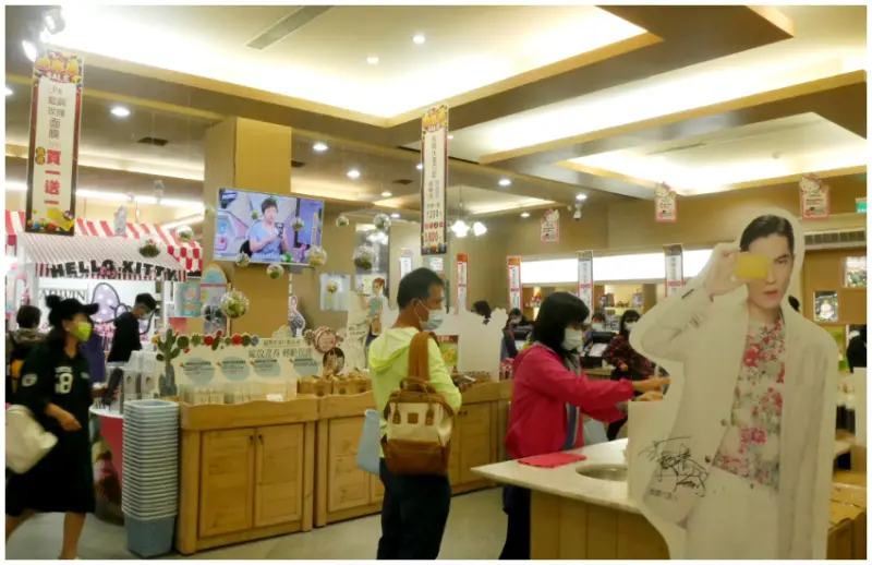 除了拍上幾張美照、手作DIY體驗,最後來到館內的產品販售區,由天王蕭敬騰代言的各式彩妝用品,琳瑯滿目地展示於眼前,種類繁多絕對能激起女孩購物慾,12月底前皆可使用振興券消費喔!