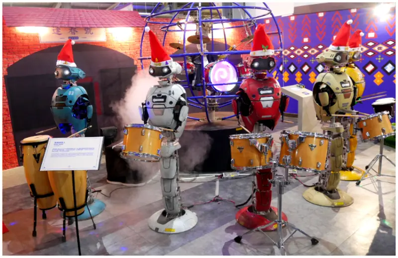 搭乘極具未來感的電梯來到4樓展區,館內展出超過30種機器人,從生活、農業、科技、醫療、航太、展演領域,像是在地化十足的「三太子機器人」、「黑熊機器人」,以及在傳統廟會中才能見到的「舞龍、舞獅機器人」、跟隨音樂律動的「樂隊機器人」,還有現場體驗與機器人相處的互動型裝置,都是透過「機器人」展現出對科技的無限可能。