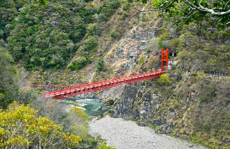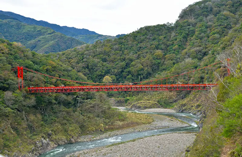 ▲舊巴陵橋,穿過隧道後可發現點綴山谷的朱紅色緞帶。