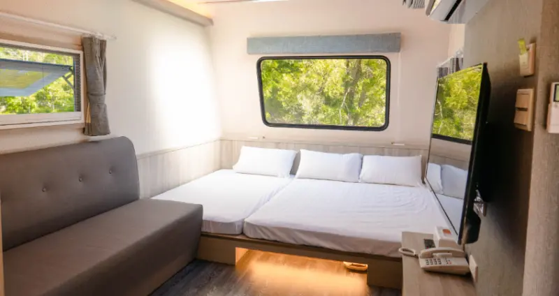 四周被群山圍繞,占地廣闊、景致優美,隨意漫步其中就很療癒,而且怎麼拍怎麼好看,到處都是熱門自拍打卡點。不少人選擇一日遊,享受大眾SPA池和落羽松美景;想悠閒點推薦一泊二食,入住可愛的馬卡龍Villa、星空露營車, 隔天還可去鄰近的老街、向天湖等景點走走。