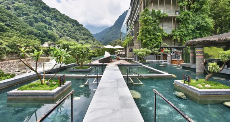 雲品溫泉酒店依傍翠綠山水,是日月潭第一家獲頒天然溫泉認證標章的度假酒店,除了欣賞大自然湖光山色,還能享受有美人湯美名的碳酸氫鹽泉,曾獲Tripadviso評選為台灣最佳飯店。完善的泡湯空間, 除了SPA按摩水療的大眾風呂、煙嵐風呂男女裸湯之外,最推薦的莫過於房內的私人湯池, 可邊泡湯邊飽覽潭景,由溫潤泉水洗滌疲憊;亦可於資生堂旗下的Qi SPA,讓專業芳療師釋放心靈壓力。
