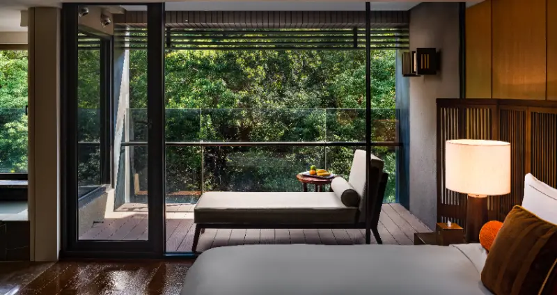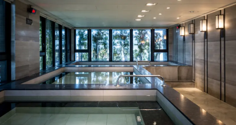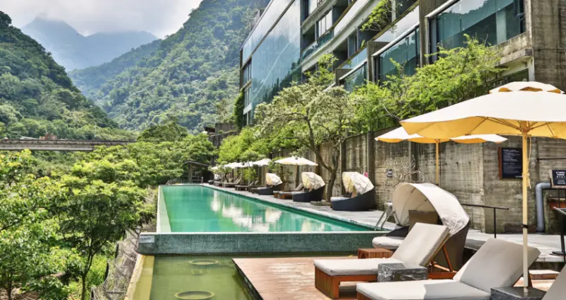 戶外除了SPA水療、蒸氣室、足湯,還有隱密幽靜的男、女裸湯區,各有獨立更衣室、烤箱等,能安心享受;另有著名的無邊際泳池,能在充滿綠意的環境中盡情戲水。在水面反射襯托之下,自己也成為美景的一部分,是熱門拍照打卡點。想要更放鬆,可以選擇私人湯屋,裝潢以沉穩冷色和木質為主,內斂質樸,踏入的瞬間就感到平靜;泡湯池採用天然檜木築成,會聞到淡淡木頭香,十分舒心。