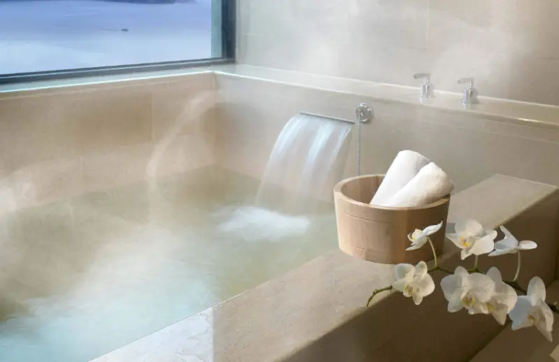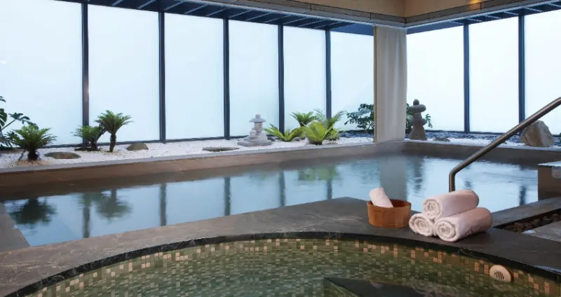 遊客可在散發日式典雅風情的大眾溫泉池中,享受暖呼呼的白磺泉,或選擇獨立靜謐的雙人湯屋徹底放鬆身心;除了白磺泉,日勝生加賀屋並提供青磺泉及北投石岩盤浴體驗, 錯過可惜。當然,若能在此住上一晚,並品嚐天翔廳利用當令嚴選食材做出的和風料理, 更是一段讓身心都充滿極致尊榮感的度假體驗。