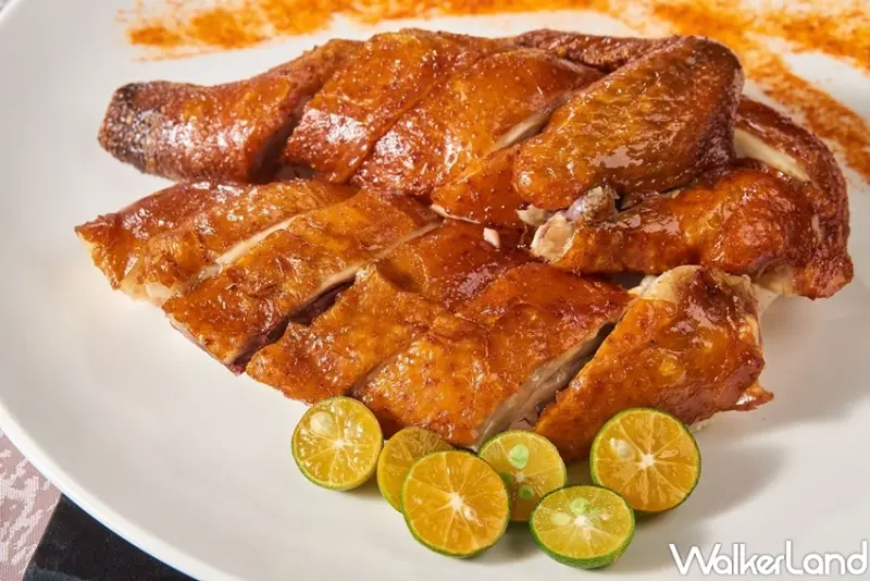 而除了好吃的烤鴨之外,全新推出的吊燒脆皮雞也是不能錯過。主廚表示:皮脆肉嫩的脆皮雞是粵菜裡面相當經典的一道菜,製程簡單分為:醃、脆皮、風乾、炸四道工序,每道工序缺一不可,都是造就脆皮雞好吃與否的重要一環。金黃的脆皮雞嘗起來皮脆肉嫩,咬下一口「喀茲」的聲音完整體現皮脆的滋味,肉質軟嫩不乾不柴,鎖住的肉汁在口腔中漫溢,著實美味。