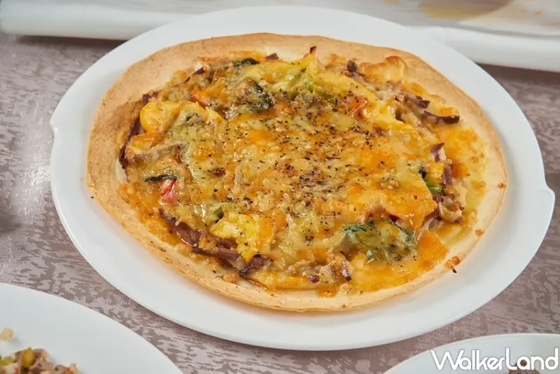其中「爐烤鴨胸披薩」,以薄脆餅皮刷滿番茄醬,舖上青紅黃三色椒絲、洋蔥與滿滿的Mozzarella起司,最後再將宜蘭櫻桃鴨胸切絲擺上與香氣十足的九層塔,經220度高溫烘烤後,餅香脆肉汁濃郁的創意Pizza料理為您美味上桌。