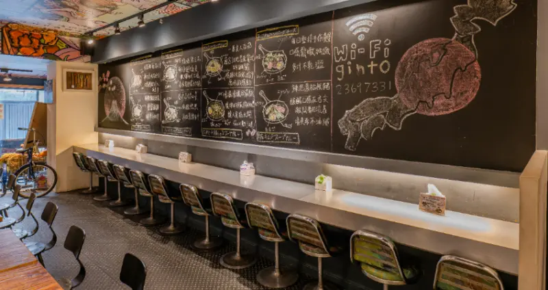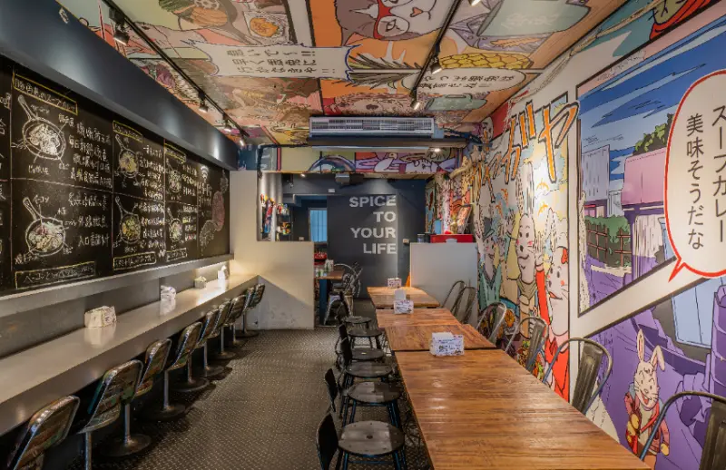 「銀兔湯咖哩」店內採塗鴉式工業風風格,而每個餐桌上也置放著立牌,提供著美味小祕方,像是餐點上桌後,建議先喝一口湯咖哩,再將黃檸檬淋在飯上,分開品味湯汁與飯香的箇中滋味,最後再將飯浸入湯汁中,品味合拍的絕佳口感。其中肉質Q彈的牛舌湯咖哩、一秒「骨肉分離」的元氣嫩雞咖哩、視覺驚人的牡蠣湯咖哩,都是人氣必點。