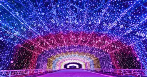用一日輕鬆遊的景點提供大家在疫情時期有不同國旅選擇,將於每日下午5點至晚間11點期間點燈,有呼應淡水賞櫻花的景點特色,打造粉嫩浪漫的「櫻花隧道」以及LED投影的「櫻花隧道」,提前讓人感受到櫻花的美。除了有經典大型耶誕樹之外,還有近年超夯的「月光鞦韆」也勢必拍打卡點,而站在的「巨型蒲公英」下則是可以偽裝成借物少女模樣,走進「耶誕薑薑」屋內滿天的螢光燈炮讓你拍出不一樣的美照。