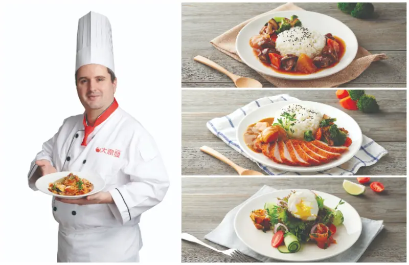 再來絕對不能錯過的,是本次改裝重要亮點「熟食區」!突破大眾過往對於大賣場熟食區的印象,大潤發邀請擁有22年廚師資歷、豐富米其林星級餐廳工作經驗的法國廚師Michel Bru加入團隊,為大潤發熟食區設計獨家餐點,推出炭烤雪花豬肉飯、茄汁雞腿義大利麵、爐烤鮭魚飯等多種菜色,以最低不到百元的平實價格,就能夠享受到名廚私房菜單美味!
