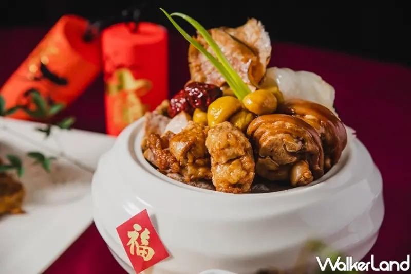 不能錯過的還有主廚融合台、粵手法的「港式臘味米糕」,以港式乾腸、臘腸為基底,搭配長、圓糯米、香菇、開陽、蛋酥製成,既吃得到港式風味,同時又能品嘗到主廚的巧思變化。此外還有「松露龍皇海大蝦」、「波羅藍眼海上鮮」、「鮮菇蟹腿翠玉蔬」等,道道精彩,每一口都是頂級風味。凡購買全套年菜,另贈主廚特製「黑金奶皇流沙包」。