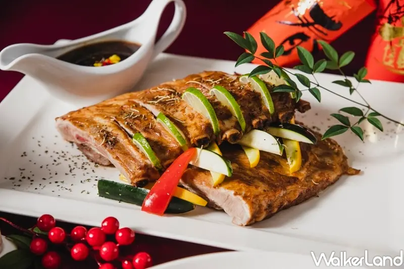 而最重要的主菜「八珍極品佛跳盅」,主廚則選用鮑魚、蹄筋、豬腳、魚皮等各式富含膠質的食材,再以開陽、扁魚、老母雞熬煮八小時,所有食材的風味融合成一體,滋補營養不油膩,展現出佛跳牆最佳風味。而「聖路易肋排佐黑胡椒醬」選用台灣在地黑豬肉,兩段式火烤烹製後,再淋上自製的黑胡椒醬,軟嫩的口感令人吮指回味。
