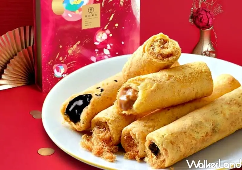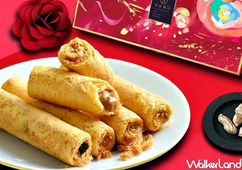 並且兩款春節限定禮盒皆使用嚴選的台灣傳統代表食材,黃金豬後腿肉鬆、減糖減鹽芝麻醬及花生顆粒醬作為蛋捲內餡,滿滿的爆餡口感襲「捲」而來,風味層次分明,以傳統蛋捲結合傳統食材的方式,迸發新滋味;禮盒外觀設計皆以沉穩優雅的茜色為底,打造東方新春喜慶的尊貴韻味,象徵美好事物逐漸甦醒。