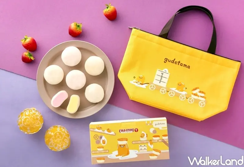 「蛋黃哥福氣禮盒」伴手禮內含草莓冰淇淋大福三顆、芒果冰淇淋大福三顆。可愛形象以超人氣草莓冰淇淋呈現,慵懶黃色則以芒果冰淇淋代表,外層以升級100%Q彈水晶麻糬皮飽滿包裹,一次享有雙重風味。並且COLD STONE預計透過創意甜點、可愛實用禮盒風格設計兩大主軸,提供甜點控視覺與味覺兼具的全新伴手禮選擇。![]()