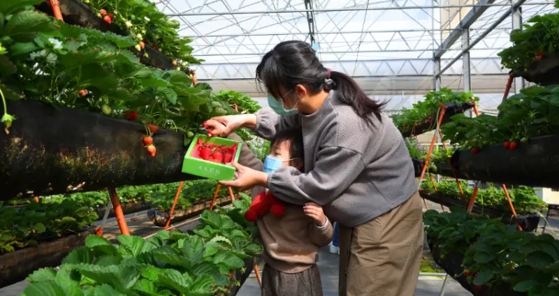由於草莓園是溫室設計,不論晴雨遊客都能優雅採果,並特別規劃由高架草莓所環繞的座位區,被滿滿草莓360度包圍,坐在其中享用新鮮草莓牛奶,非常夢幻!而主人自己興趣所設置的多肉溫室也開放與遊客分享,上百個品種療癒系多肉植物,喜歡都能買回家。
