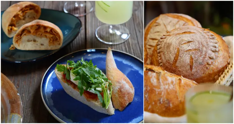 4年前回鄉將爺爺的三合院整理翻新,老厝因而流露閒適的古早氛圍,現在是店面也是自宅。當初開店原意就是「因為好吃好喝,所以分享」,窗口的菜單就是自己的生活日常,像是老闆喜愛的芝麻葉麵包系列,而喜愛小黃瓜清爽感的老闆娘特調出小黃瓜氣泡飲等,跟麵包一樣都是分享的概念。