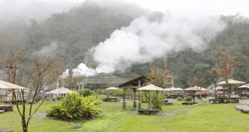 回程轉往台7丙線,來到2018 年重新對外開放的「清水地熱公園」。清水地熱位於大同鄉清水村南側的清水溪谷,占地約2.5公頃, 溫泉屬於鹼性泉,是相當具人氣的溫泉,若在多雨的冬日季節來到此地,清冷空氣中散發陣陣白煙,整座山頭雲霧裊繞,景色相當夢幻。