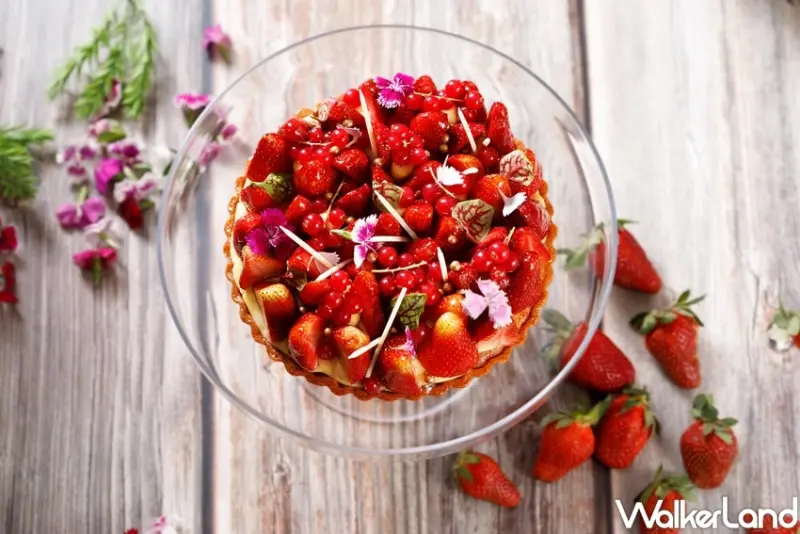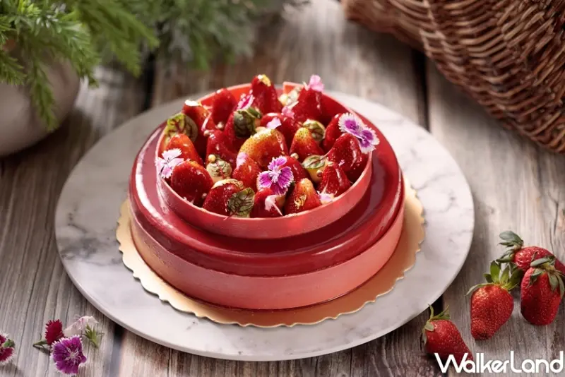 「新鮮草莓杏仁塔」堆滿大顆飽滿的紅色草莓,像在宣告著這個季節就是自己的主場,搭上酥脆的塔皮及杏仁獨有的香氣,多層次的味覺搭配令人想要全部獨佔。「草莓百香果蛋糕」六吋售價980元,八吋售價1,080元,「新鮮草莓杏仁塔」七吋售價1,080元,兩款蛋糕皆需2天前預訂。
