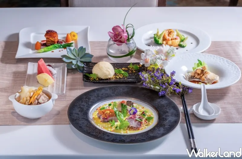 並且入住期間還可以前往粵亮廣式料理,享有主廚特製的「花漾饗宴套餐」,市價達2,760元+10%,每一道料理都能見到花的蹤影,將料理點綴得更美,也將花入菜增添風味,包含前菜的桂花梅醬烤鴨及玫瑰蜜汁叉燒、金針花燉花膠軟排、洛神花燒豬腩肉、古法花菜干蒸石斑、碧綠薰衣草蝦球、焗皮桂花雪影包等。
