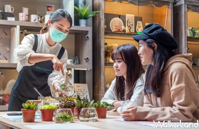 此外,Elite Concept一禮莊園安排手作多肉植物生態缸課程,每房提供1組材料,在花藝師專業帶領下,讓房客們一步步進入多肉世界,從認識並挑選最合適的植物開始,再根據每株植物的姿態安排擺放位置,慢慢組合出獨有的多肉植物生態缸,同時花藝師也會說明如何照護生態缸,最後房客還能把成品帶回家欣賞。
