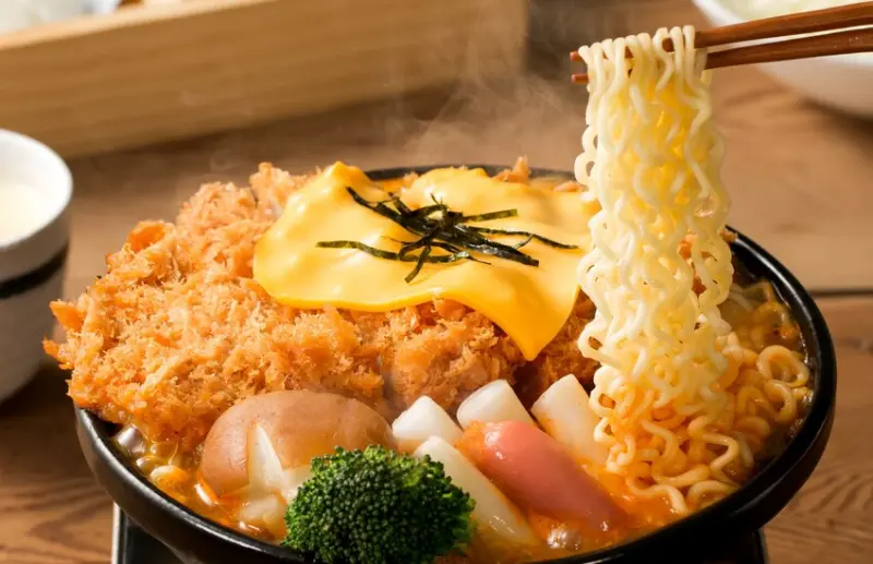 ▲「重量級部隊豬排鍋」$369以韓式泡菜高湯與辣醬特調,豐盛且份量感十足,香醇濃郁,香氣繚繞,無敵開胃!