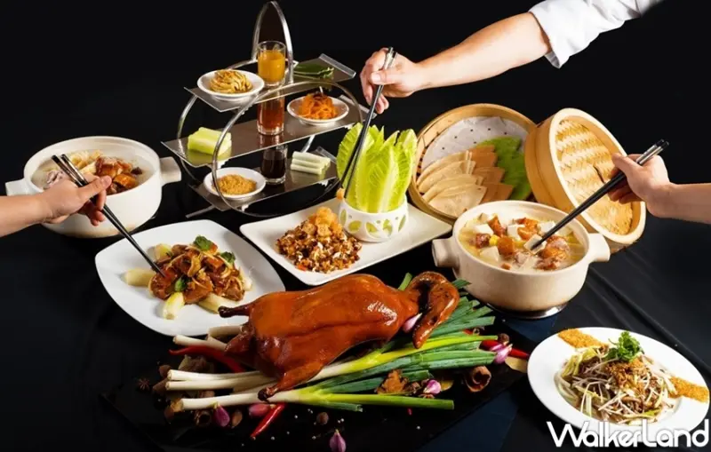 此外,人氣料理「靓皮烤鴨」,維持傳統古法,選用3公斤的櫻桃鴨,依添料、醃製、風乾、上醋水、烘烤、淋油等多道程序進行料理,烤鴨皮脆肉多汁,搭配招牌甜麵醬外,還加入復古風特色,讓懷舊滋味再升級,新增微辣刺激的金蒜燒鴨醬、客家風味的蜂蜜金桔醬,配料也同步改版,將跳跳糖裹上花生粉,入口後在嘴裡翩翩起舞,化解鴨皮的油膩之餘,細緻甜味更增添花生香氣,另外也特別強化口感,全新開發桂花情人果,酸甜的滋味、爽脆的口感,馬上勾起小時候回憶。