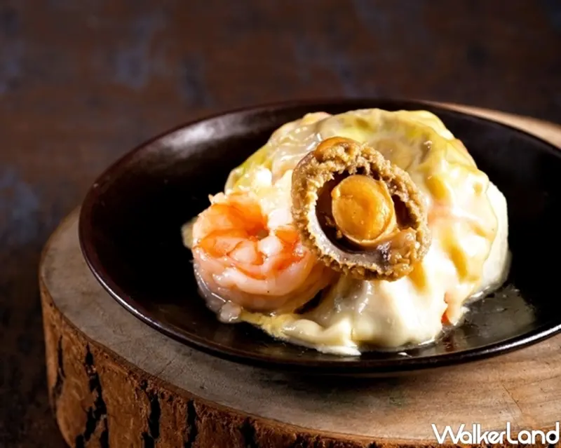 全新推出的「花膠三品鍋」,主廚用台灣經典手工菜「雞仔豬肚鱉」手法,創意展現粵菜傳統名湯「胡椒豬肚雞」風味,將高達6顆鮑魚及粵菜必備的花膠放入土雞中,再以豬肚包覆,與燉煮8小時的白胡椒濃湯底一同煲煮,喝起來溫順厚實,胡椒香也讓人越喝越唰嘴,為驅寒暖胃最佳聖品,額外再提供蔬菜盤、美國無骨牛小排、手打墨魚漿與手打蝦漿等,當成火鍋般燙熟食用,吃起來最為新鮮多汁,適合4~6人共享。![]()