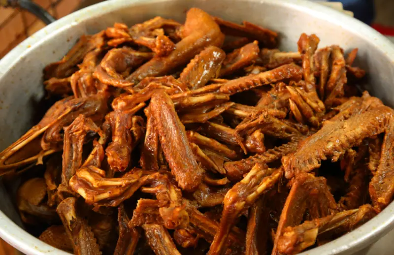 還有一道現今不太常見的「香菇腦湯」,以當日新鮮豬腦燉香菇的古早味清湯料理,是饕客眼中的鮮美湯品,由於豬腦稀少,每日限量,大多中午過後就會售完,想品嚐得要趁早來。另外,用阿公傳下來的老滷湯滷製的鵝翅、鴨翅、鵝腳、鵝胗、鵝肝、鵝心等乾滷小菜,豪邁的就放在大鍋中,鹹甜適中的口味,可當餐桌配菜,也是下酒的良伴,純粹把它當成閒嗑牙時的鹹味零嘴也很適合。