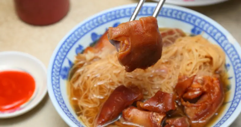 滷得通透的豬腳,吃來噴香唰嘴、軟嫩Q彈,老闆是進整隻的豬腿肉,在以自家滷汁燉煮前,還得先冰鎮一天時間,滷出來的豬腳才會彈牙帶勁,這可是老闆透露的美味小秘訣;而點餐時,還能讓客人依喜好選擇連皮帶骨的中段、腳蹄或肉多的腿庫等部位,滿足了顧客多種的味蕾饗宴。