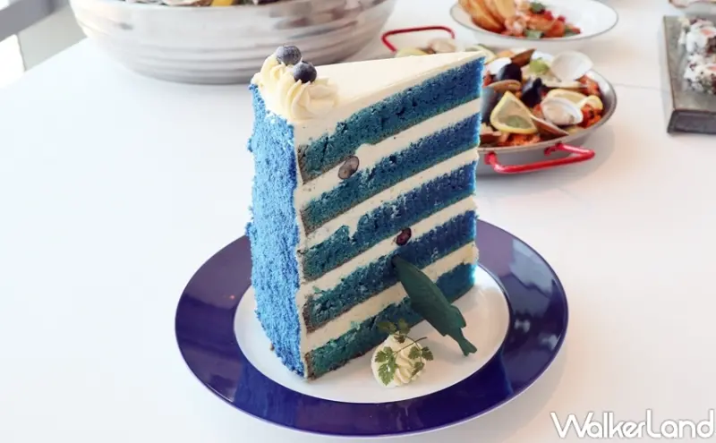 而在甜點方面,SEA TO SKY推出巨大藍絲絨蛋糕致敬S&W人氣甜點巨大巧克力蛋糕,預期將可掀起另一波打卡拍照風潮!藍莓口味蛋糕以天然梔子花提煉創造出美麗絲絨藍,色彩飽和且溫暖,蛋糕夾層為濃郁的奶油乳酪醬,巨大的蛋糕造型與藍白相間色彩呈現海洋與天空的廣闊風貌,是SEA TO SKY的招牌甜點。
