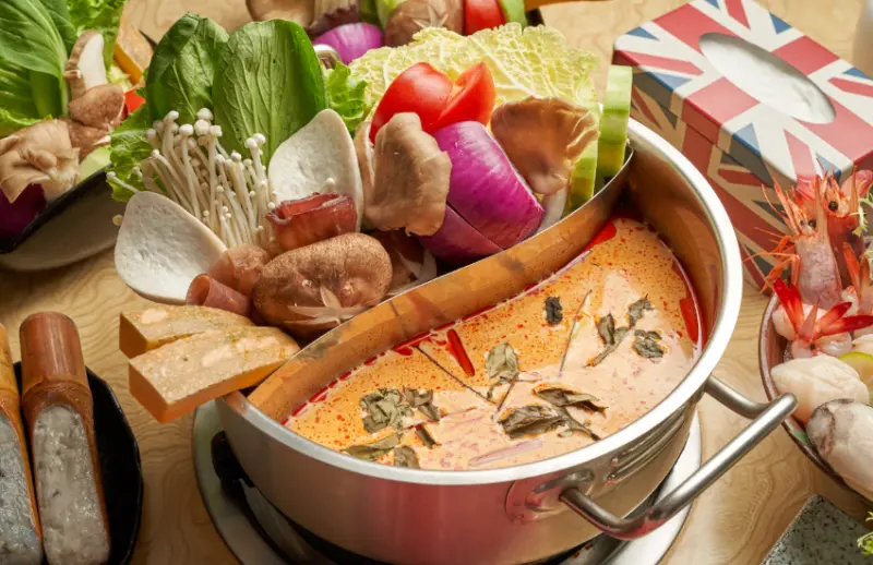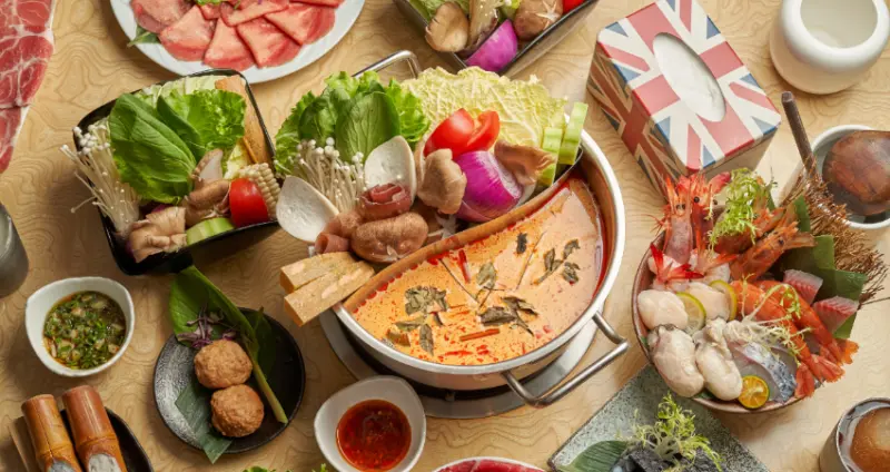 進口泰式香料與大量蔬果一起熬煮成口感爽口的湯底,口味溫潤、韻味十足令人口齒留香,打破大家對傳統鍋物的印象,將泰式風味帶進市場,品嚐美味有吃到飽與單點兩種選擇,就是要讓客人感受高CP值的體驗,符合時令的食材讓美味到更到位,除了火鍋,泰式熟食如椒麻炸雞翅、泰式春捲、金錢蝦餅、泰式椒麻雞等都深受客人喜愛;火鍋湯底又以翡翠皇室綠咖哩湯底、檸檬香茅湯底最受歡迎,濃郁的香料味搭配嚴選新鮮食材,幸福得泰式饗宴讓吃鍋變得超享受。![]()