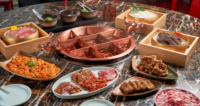 道地四川重慶麻辣鍋口味,首創純和牛油鍋底與重慶原裝進口辛香料,用重慶的麻、辣、香喚醒舌尖上的慾望,九宮格鍋具更是店內一大特色,不同位置不同火侯,能品嚐到不一樣的風味,琳琅滿目上百種食材都是涮鍋的好料,麻而不辣的口感一吃就會上癮,除了需要下鍋的鮮食外,也有特色熟食。除了料理美味,店址坐落在45樓,居高臨下大啖美食的同時還能欣賞大台北全景,全店整體裝潢呈現中國風,天花板、牆面以黑色作底色,吊燈、桌椅則以嗆辣的紅色為主,讓空間顯得氣派又高雅。![]()