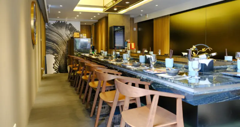開幕不久就成為火鍋老饕的口袋名單,採中西合璧的風格,溫暖昏黃燈光搭配大理石的桌面與沉穩的木質色調,營造出內斂的氛圍,讓用餐感受格外舒適。打開菜單會發現高貴不貴,從美國Prime牛肉、頂級松阪豬、櫻桃鴨、鮮活鱸魚、波士頓龍蝦到需要事先預訂的北海道帝王蟹、松葉蟹等琳瑯滿目,平價食材到高檔食材一應俱全,想吃什麼店家都能滿足客人,午餐時段也有更超值的主廚私房推薦,搭配店家自豪3種湯頭,呈現出幸福的美食饗宴。餐中細膩的小菜與餐後甜點更是受一致好評。還有多款進口酒,讓人吃得盡興喝得開心。![]()
