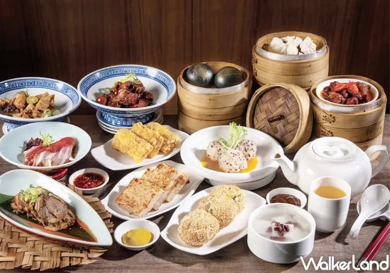 鮮蝦燒賣、香酥花枝蝦排、紅藜珍珠丸子、虎皮蝦捲、蔥燒酥餅、三絲炸春捲、蜜汁叉燒包、香茜魚翅餃、臘味煎蘿蔔糕、蘿蔔酥餅、鼓汁排骨、蠔油鳳爪、蝦仁腸粉、炸兩腸粉、芝麻包、芝麻球、流沙包、馬蹄條、芝麻糊、椰汁西米露、杏仁豆腐