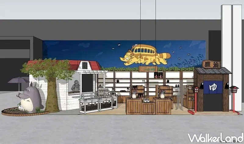「橡子共和國台南店」的店鋪設計亦有諸多巧思。為了呼應台南的古城風情,除了經典的《龍貓》草壁家櫃台設計,店內更有台南店限定湯婆婆的油屋打卡點,華麗的日式傳統建築,最適合台南古城的古色古香。此外,3月18日至6月20日開幕期間,新光三越新天地本館G樓西門路門口還有龍貓公車站立牌的打卡點,熱愛龍貓的大小朋友千萬不要錯過。