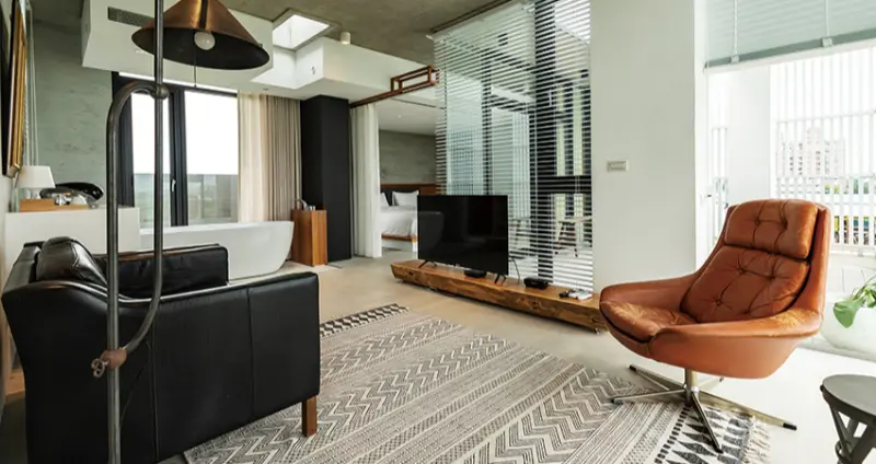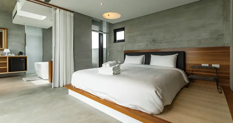 低調融入稻田景致的清水模民宿「自然而然」,是主人花了6年整地規劃而成,周圍水池環繞,遍植落羽松,養了錦鯉與小鴨,與自然共生共處的概念處處可見。民宿使用大量落地玻璃,引進室外綠意與溫暖天光,空間通透舒適;提供的7間客房時尚簡約,往外皆能望見療癒的自然美景;還有私人管家提供早餐、下午茶服務,讓旅人在此能自在享受田園住宿的樂趣。![]()