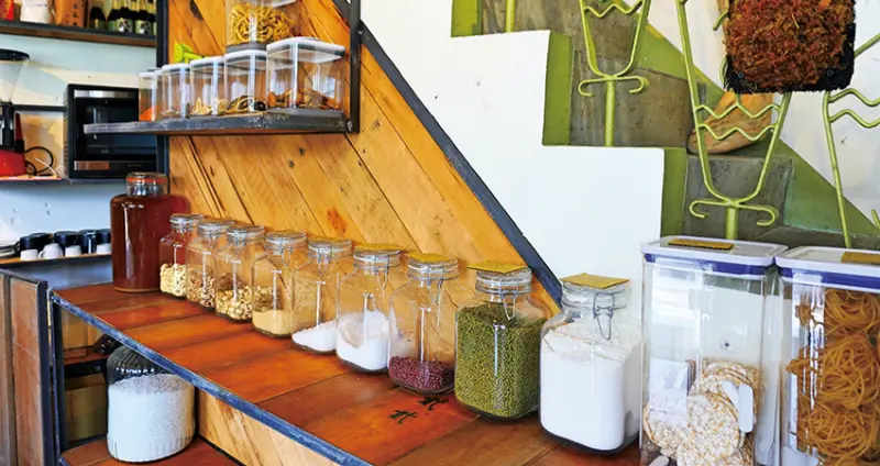 老闆為壯圍本地友善小農,與老闆娘為了推廣友善農產銷售,以宜蘭第一家無包裝商店為創意提案,獲得在老屋中實踐理念的機會。老闆夫妻回收老屋中的舊有材料如床板、窗框等,打造出環保概念的店內空間;1樓商店無包裝販售蔬果物產多為壯圍在地或台灣各地有機農產品,也提供米穀粉製作的西點,無添加、不含麩質,適合各年齡層享用;2樓未來將不定期舉辦展覽、放映等活動,為在地增添濃濃藝文氣息。![]()
