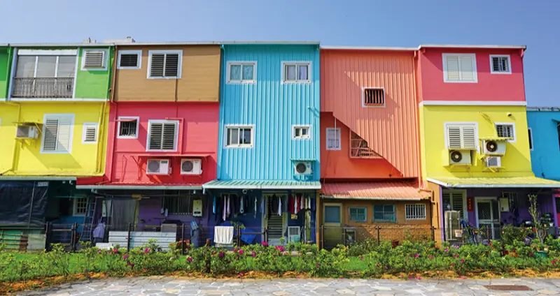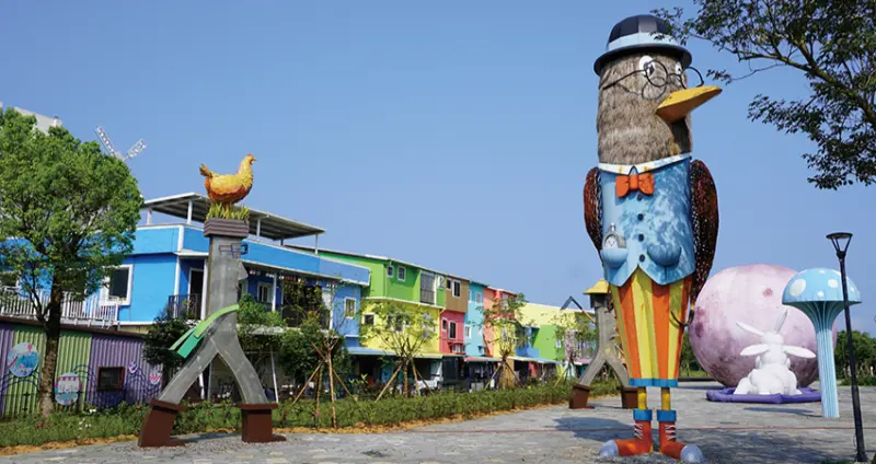 配合冬山鄉整合鐵道、河道與老街觀光的綠色轉運亮點計畫,在與冬山火車站前的在地居民討論過後,將民宅外觀漆成粉嫩可愛的色彩,遊客出火車站便能見到一整排七彩繽紛的彩虹屋,搭上藍天綠地時景致迷人,就像是「陸地版正濱漁港」,心情也隨之愉悅了起來;而車站前廣場整修後,迎接著遊客的巨型咕咕鳥站長、人字型裝置藝術等,也是很受歡迎的拍照打卡點。![]()
