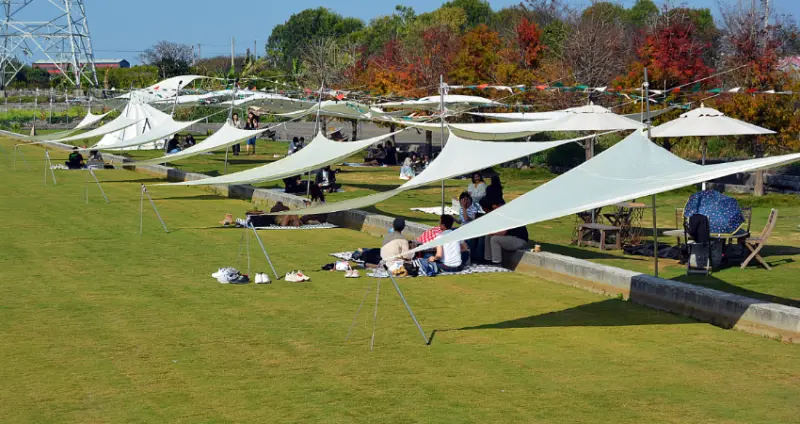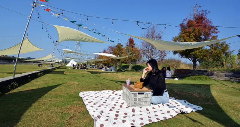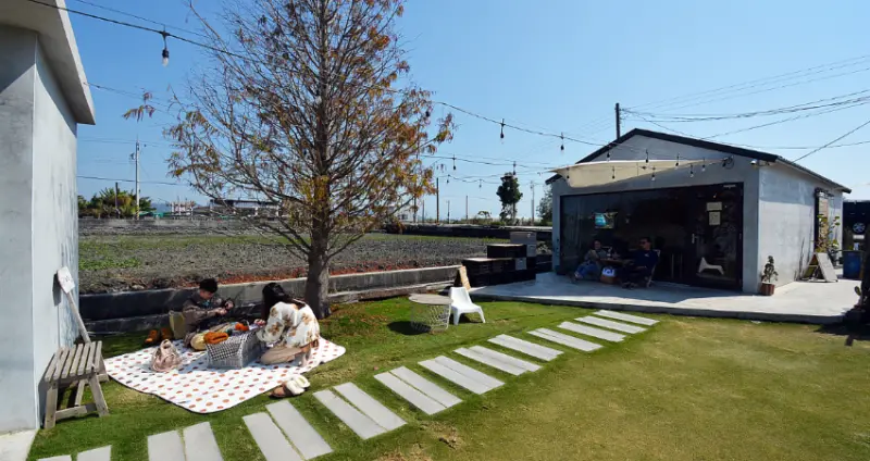 野餐系療癒風強烈的小田生活,坐落在鄰近田中高鐵站附近的田野間,百坪的茵綠草皮,綴著牙白色遮陽帆布像是風箏般飄揚在空中,僅有的一棟建築是室內用餐空間和小小廚房,水泥牆面建築的大地色系融入周遭景觀,小巧可愛又樸拙的木頭手寫招牌,展現可愛的迎賓功能,而最受遊客喜愛的是不用自備道具,也能享受野外露營的感覺,店家貼心地準備了野餐桌和野餐墊,自己抬到想坐的位置,鋪上墊子,就能享受自己的一方空間,用餐喝飲料、看書滑手機,這一刻是最親近大地的時刻!![]()