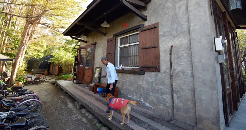 男主人陳先生在台北從事土木工程,太太則是學服裝設計,2人工作多年後,為了一圓太太開咖啡店的夢想,毅然攜手搬離台北回到田中老家,「小時候就常被蟲鳴鳥叫聲吵醒,多年後又回到這樣的環境,很快就習慣了!」他們決定打造與眾不同的咖啡館,刻意不在人潮眾多的市區而選擇在自家農田,「因為不習慣那種小而拘謹的店面,我們想要的是這種自然、寬敞的戶外庭園。」在這500多坪的田地中,種上翠綠的台北草草皮和落羽松,打造了一間小小的廚房和僅有的5桌客桌,景致與鄰近的稻田、苗圃連成一氣,視野變得開闊,而客人自然而然也融入這自然景色中,體驗天帳地幕的感覺。