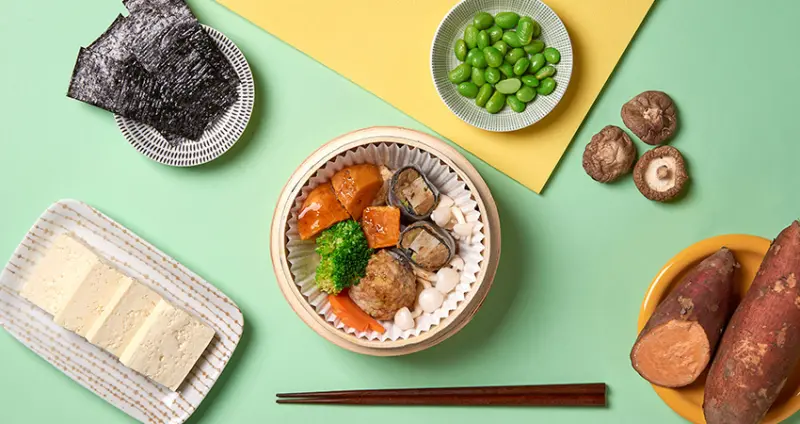 春季的繽紛色彩是什麼味道呢?天仁喫茶趣主廚運用海苔及河粉將豐富食材捲起來做成素捲,一口咬下,毛豆爽脆、百頁豆腐的軟綿,還有招牌913茶王的甘醇香,旁邊搭配著手工香菇素丸子、花椰菜、地瓜與美白菇,讓多層次的融合同時又保有913茶香的溫潤與清爽。
