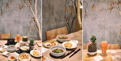 紅糟肉就像穿越時空的一道料理,春茶紅糟豚肉將醃製過後香氣四溢的台灣梅花肉,配上Q彈炊粉,淋上特調春茶醬汁進行蒸煮,蒸籠一打開瀰漫著酒糟的香味四溢,混著春茶的清香與肉本身的鮮甜,是天仁喫茶趣的必點套膳!![]()