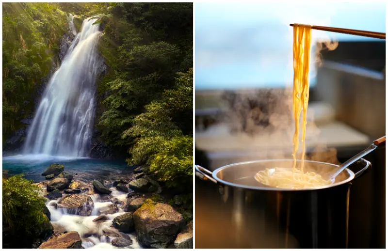 瀑布之所以美就在於那動靜之間,靜止的岩壁、脈動的流水以及周遭環繞的山色與景致,一切都在靜與動之間交織。這樣的感受像極了體驗滿漢大餐的過程,從配料、注水、燜煮到細細品味,從湯頭、麵條到肉塊都具備了上乘麵食等級以及多重層次的食感驚喜。