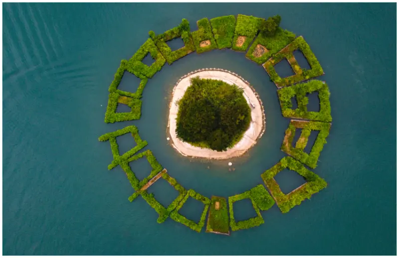拉魯島從高空俯瞰像不像辣椒圓竹籃,如此觀賞之趣味與美感真的只有它獨有。「潭中浮嶼」為日月潭勝景之一,其中浮嶼指的就是拉魯島。![]()